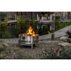 Konstruksjonen i rustfritt stål garanterer holdbarhet under skiftende værforhold i mange år. Den sirkulære formen med perforert design sikrer optimal luftgjennomstrømning og gir en effektiv forbrenning og dermed nesten ingen røykutvikling. Varmeskjoldet mot underlaget minimerer strålevarmen og muliggjør bålflaten på gress, treterrasser m.m. De stabile føttene gjør det mulig å plassere bålflaten på ulike underlag. Grunnet den effektive forbrenningen reduseres askeavfall og sot som betyr mindre rengjøring og vedlikehold etter bruk.