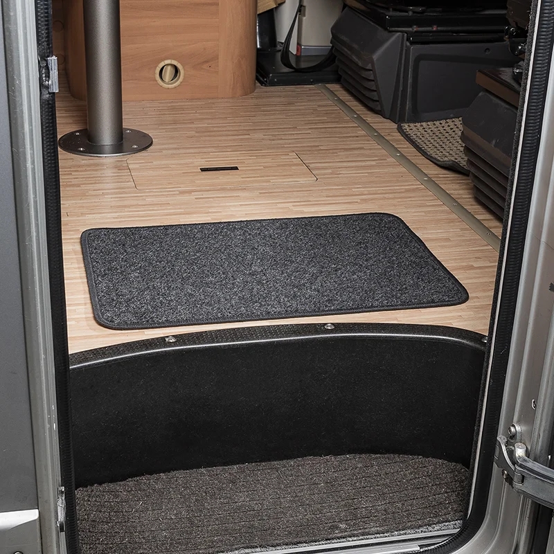 Denne dørmatte fra PROPLUS holder smuss ute fra din bobil eller campingvogn med en sklisikker granulær bakside, som forhindrer fall ved inngangen. Den teksturerte overflaten fjerner effektivt gjørme og sand fra skoene, slik at du unngår å trekke utendørs smuss inn i ditt mobile hjem. Matten måler 40 x 60 cm og er produsert i slitesterkt nålefiltmateriale, som motstår intensiv bruk og skiftende værforhold under camping.