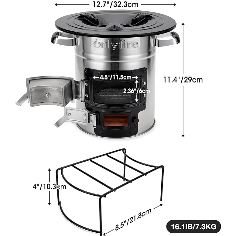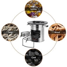 Hvis du ofte finner deg selv uten tradisjonelt brensel, gir denne rocketstove deg frihet. Du kan fyre med tre, pellets, blader, grener eller kull - alt etter hva som er tilgjengelig. Det sylindriske designet med toppåpning fungerer med dine gryter, panner og grillplater.