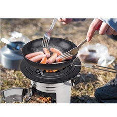 Håndtakene på sidene gjør det enkelt å flytte ovnen, selv når du bytter leirplass. Med en vekt på 7,3 kg er den transportabel uten å være for lett til å stå stødig. Det sylindriske designet passer naturlig inn i ditt campingutstyr, og toppåpningen gir direkte tilgang til kokeflaten.
