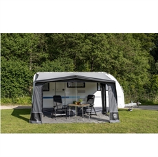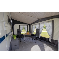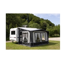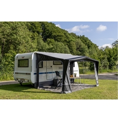 Med REIMO BOLOGNA får du et helårstelt som gir deg 400 x 240 cm ekstra boligareal til campingvognen din. Teltet er konstruert med vegger av belagt polyesterstoff på 230 g/m², som sikrer beskyttelse mot elementene året rundt. Du får maksimal fleksibilitet med front- og sidevinduer som kan rulles til siden, samt en praktisk veranda-funksjon i frontvinduet. Ventilasjonssystemet under takutspringet forhindrer fukt og mugg, noe som er særlig viktig i skiftende værforhold. Stålrammen med hurtigspenningsmekanisme gjør det enkelt å sette opp teltet uten profesjonell hjelp, og de høykvalitets YKK-glidelåsene sikrer pålitelig bruk i pressede situasjoner.