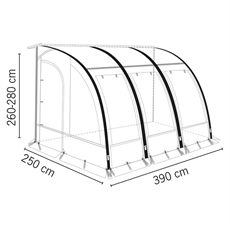 • Mål: B: 390 x D: 250 x H: 260-280 cm