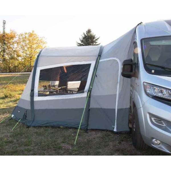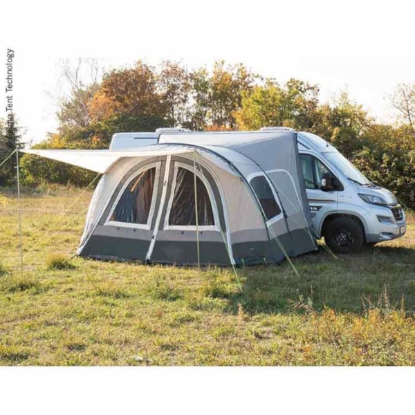 Super praktisk Luftelt som kan stå for seg selv. Teltet har kun en luftslange, hvilket gjør det enkelt å sette opp. Fronten kan fungere som veranda eller helt være åpent. Med teltet følger et solseil som gir ekstra skygge på de varme dagene. Bakveggen med myggnetting gir ekstra ventilasjon. Veggen kan åpnes til venstre eller høyre side. Teltet er utstyrt med tonede ruter og bund.