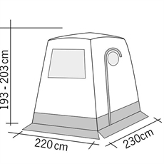 Produsert i holdbart 190T polyester med en romslig størrelse på B:220 x D:230 x H:193-203 cm. Det kompakte pakkeformatet på 95 x 20 x 22 cm gjør transport og oppbevaring enkelt. Taktakvindu og dørvindu sikrer godt naturlig lys, mens den grå fargen passer til de fleste varebiler.