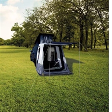 Med integrert myggnett i front- og sidevegger holder du insekter ute, mens ventilasjon i toppen av teltet sikrer frisk luft. Den lette konstruksjonen og universal montering med slusegang fra bakenden av bilen gjør teltet ideelt for spontane stopp eller den lengre reisen.