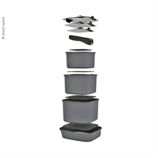 Praktisk, firkantet aluminiumssett med matchende lokk i rustfritt stål. Veldig plassbesparende.