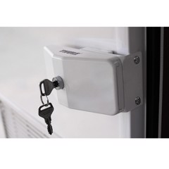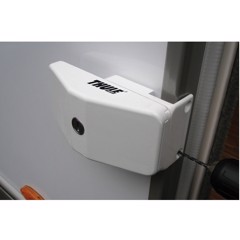 THULE Door Frame Lock er en rammemontert dørlås i høy kvalitet som forhindrer innbrudd i bobiler og campingvogner. Den robuste konstruksjonen i pulverlakkert aluminium gjør låsen holdbar. Rammelåsen muliggjør montering uten monteringsplate og betjenes ved å føre den mot venstre eller høyre for å sikre ditt kjøretøy.