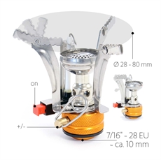 • Skrue-på-komfyr: passer til gryter 28-80 mm diameter
