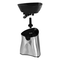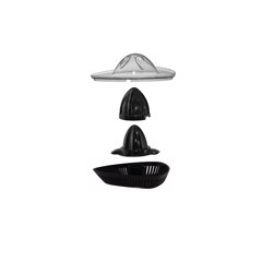 Designet er vakkert i rustfritt stål. Saften presses direkte i glasset. For å få ut all saften dreier pressen både til høyre og venstre. Lokket er gjennomsiktig og delene kan vaskes i oppvaskmaskin, men ikke motordelen. Med anti-drypp funksjon og massefilter.