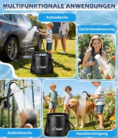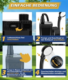 • Inkludert i pakken: Dykkpumpe, dusjhode, sammenleggbar bøtte, lader, monteringskrok