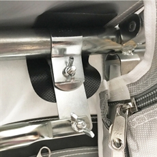 Front og sidestykker: Nedfellbare og avtagelige med lynlås.