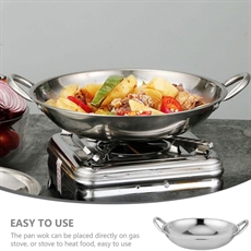 De doble håndtakene kan beskytte hendene dine mot brannskader og skåldinger. En wok i rustfritt stål er praktisk å bruke.